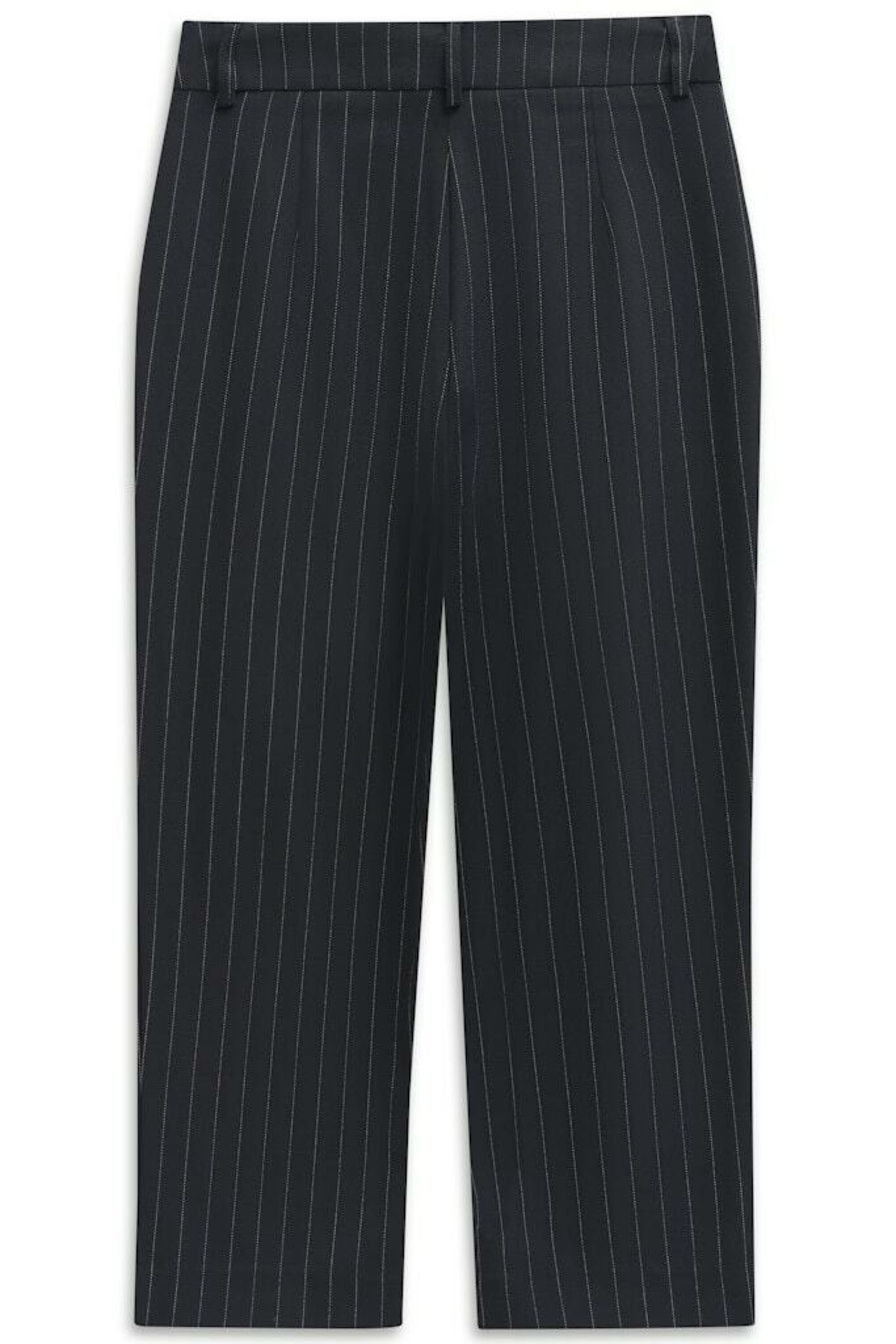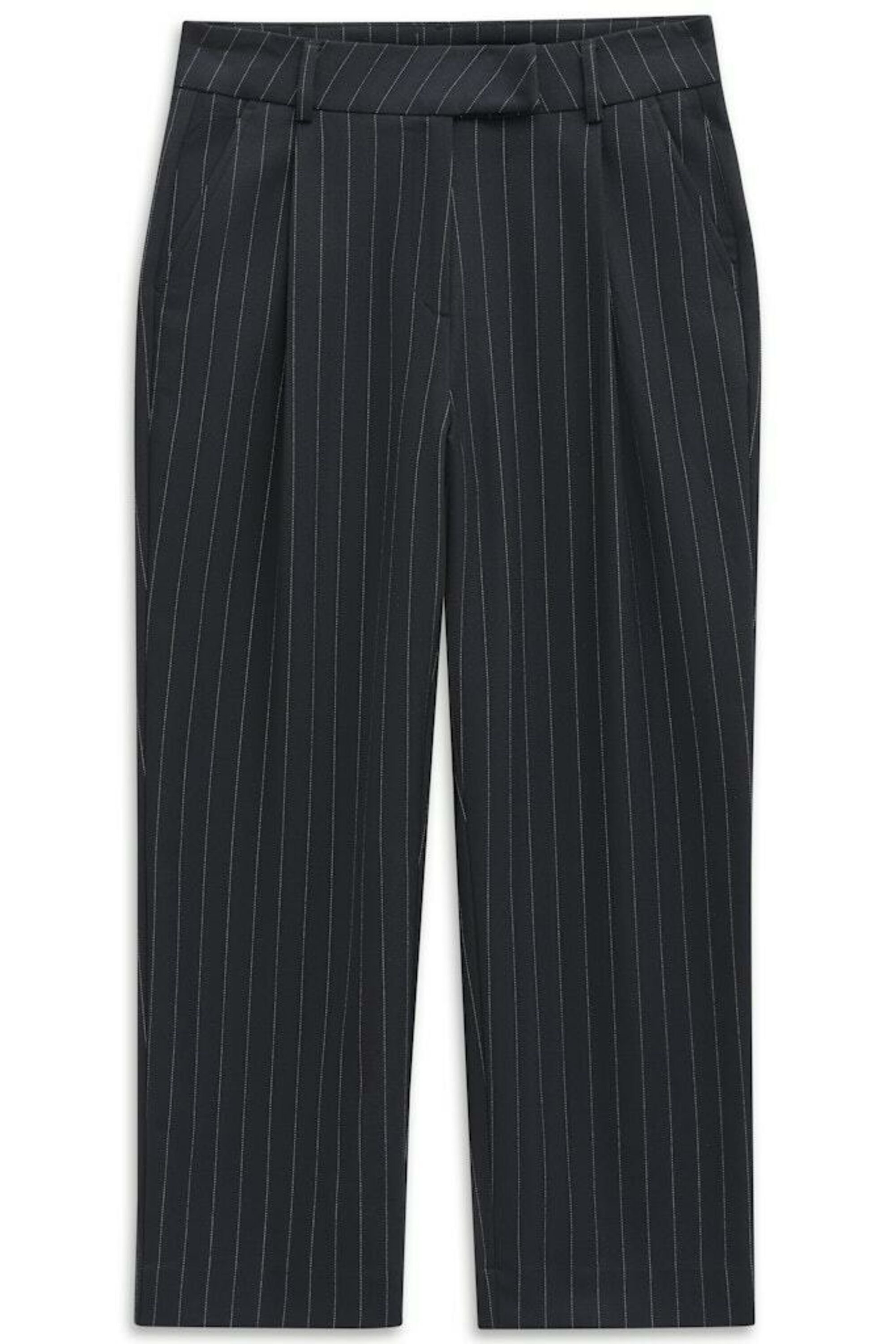 Leicht verkürzte Hosenform mit Nadelstreifen und Bundfalte aus einer elastischen Viskosequalität. Passend dazu gibt es eine Bluse aus dem gleichen Material.