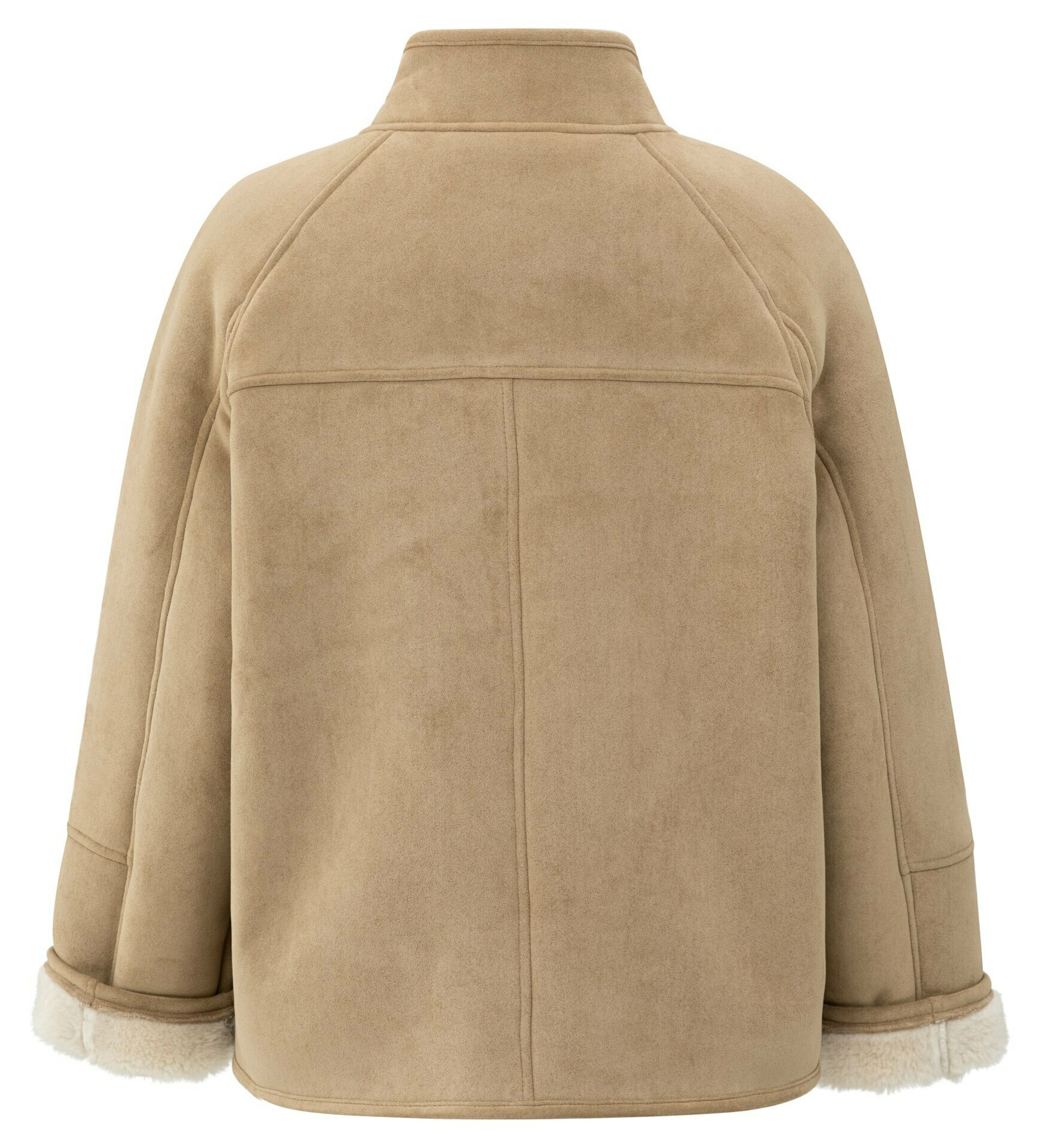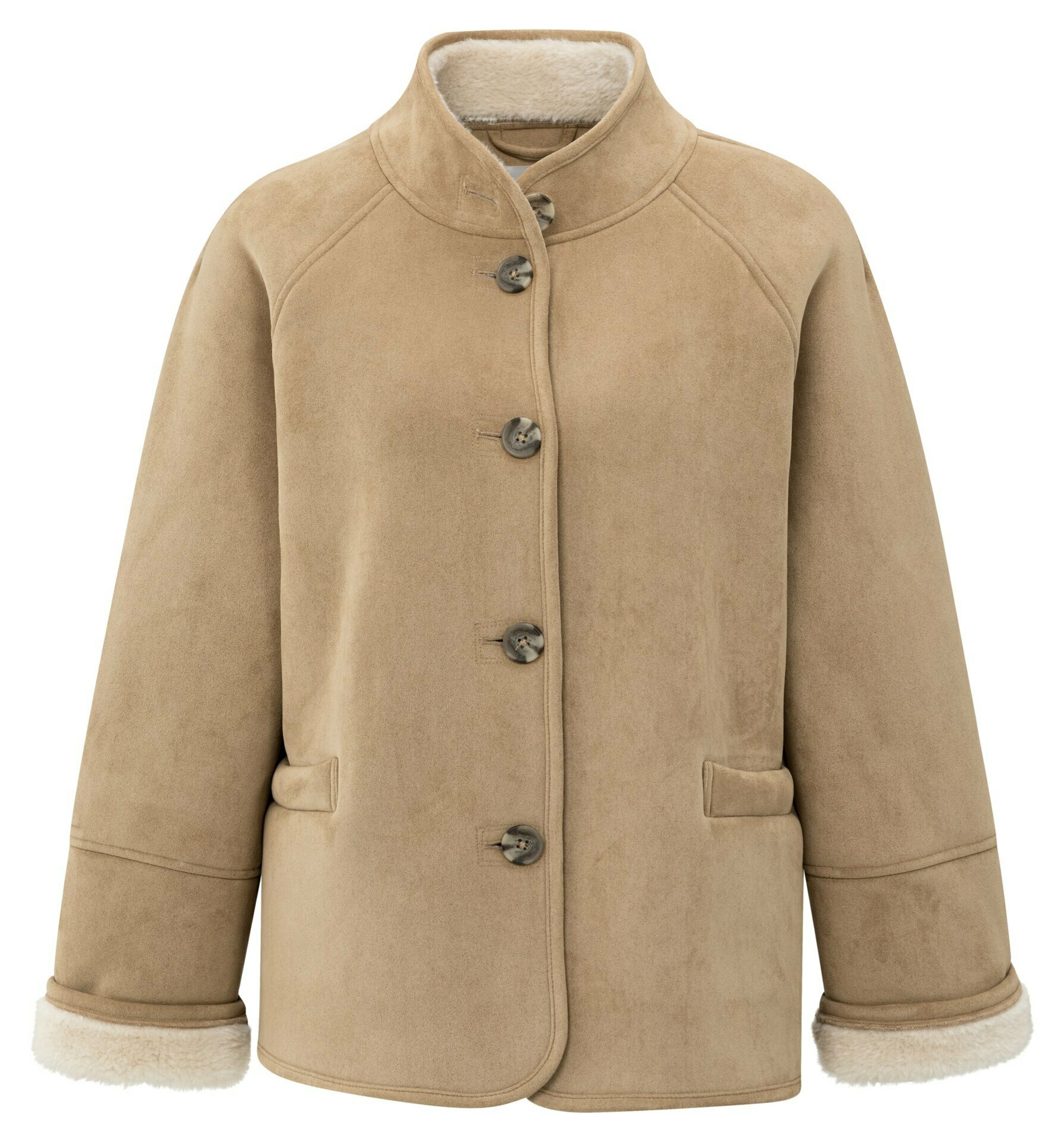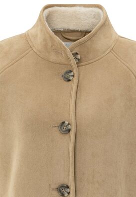 Diese Oversize-Jacke in Lammfelloptik ist warm und stilvoll. Sie hat Raglanärmel, einen Stehkragen und eine Knopfreihe. Das weiche Futter und die umgeschlagenen Bündchen verleihen ihr eine gemütliche Note. Die Jacke ist aus Velourslederimitat gefertigt und bietet einen luxuriösen Look. Die perfekte Wahl für kalte Tage.