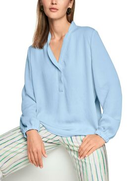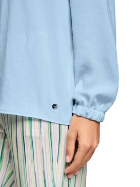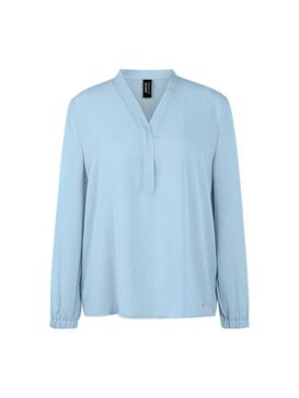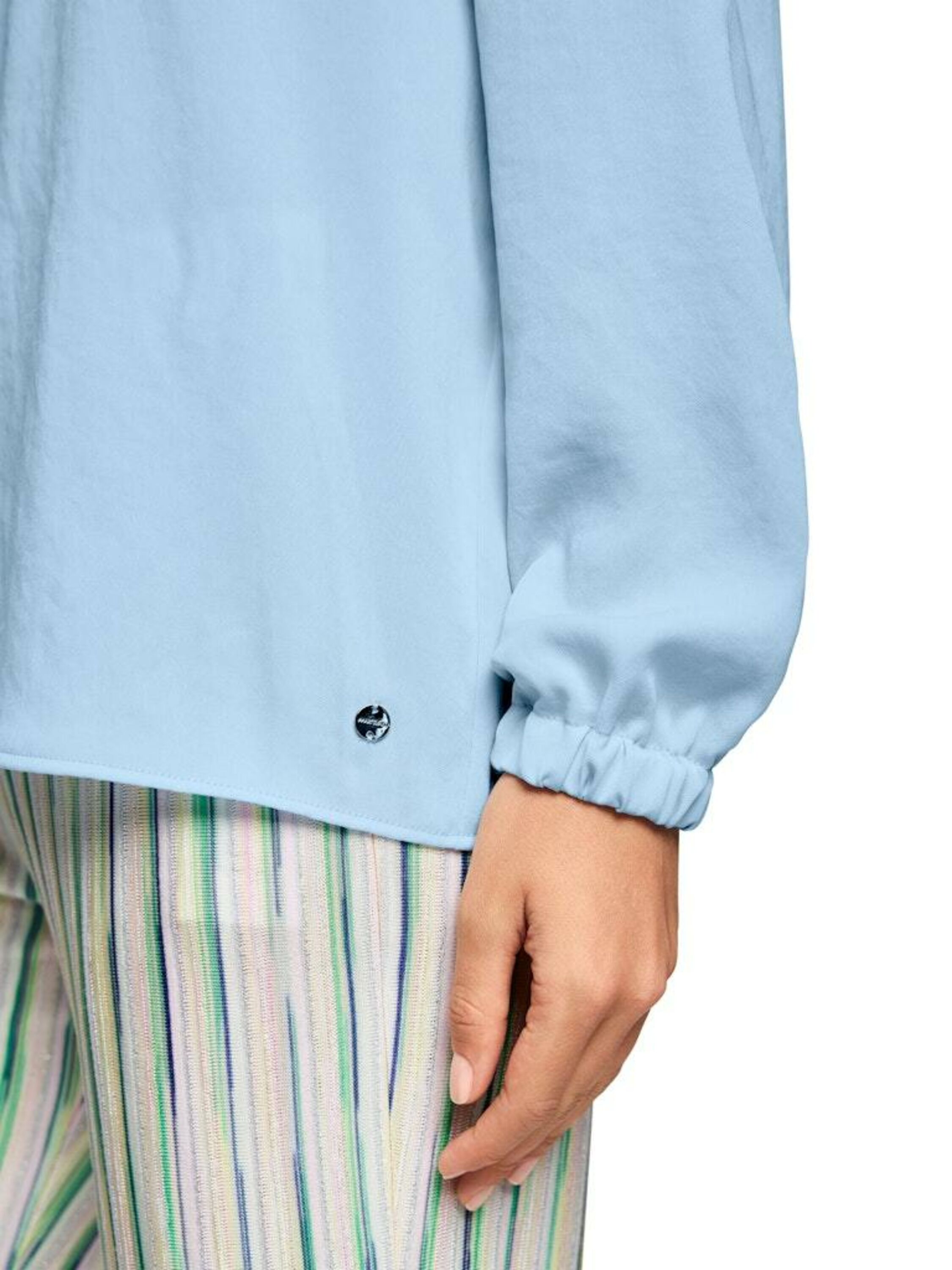 • Luftig leichter Tragekomfort - weite Bluse aus weichfließendem Gewebe. Das Modell hat eine kastige Form und lange Ärmel mit Gummizug im Saum. Blickfang ist der V-Ausschnitt mit dem zarten Volant. Das Modell ist aus vorwiegend recyceltem Polyester.