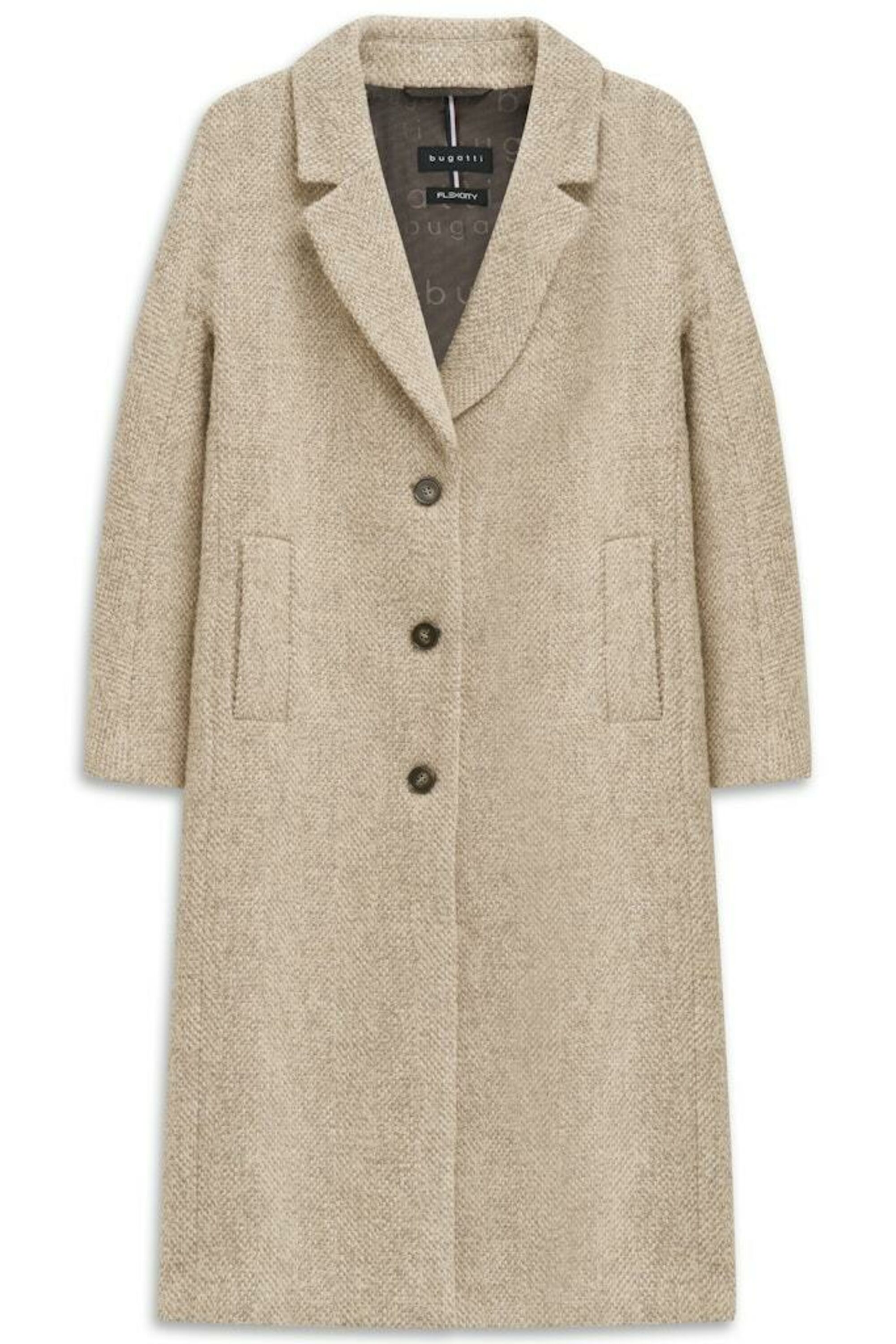 Langer, antaillierter Wollmantel im klassischem Fischgratdessin, mit Revers und klassischen Schubtaschen. Die komfortable Flexcity Innenausstattung sorgt zudem für ein einzigartiges Tragegefühl.Die bugatti Flag setzt farbliche Akzente im Innenleben.