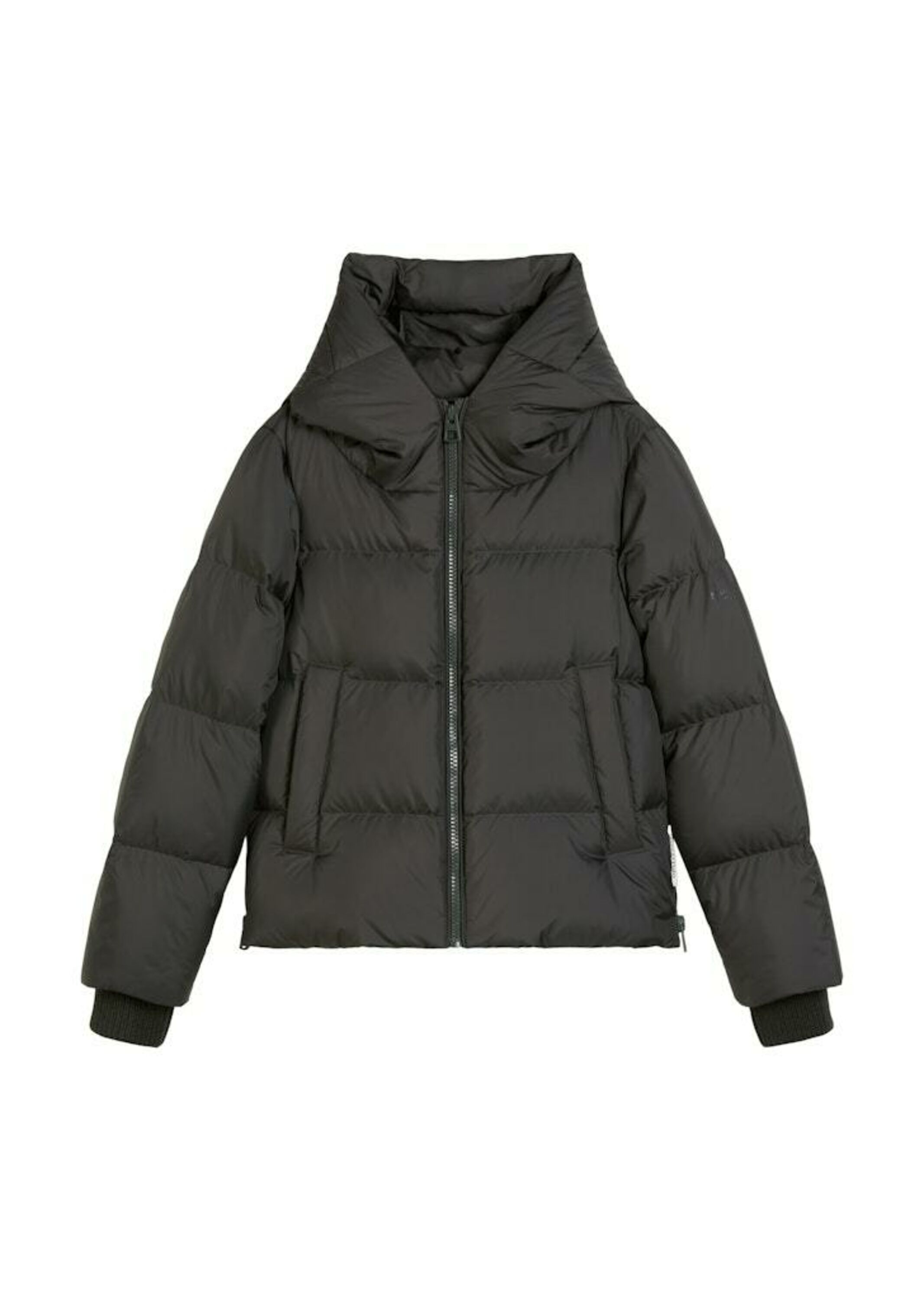 Hergestellt aus hochwertigem, wasserabweisendem Performance-Material aus recyceltem, mattem Polyester und gefüllt mit einer weichen und warmen Mischung aus Daunen und Federn. Zu den technischen Merkmalen gehören ein robuster Reißverschluss, praktische Druckknopf-Leistentaschen mit weichem Fleecefutter und Rippstrickbündchen am Ärmelabschluss. Das lässige Volumen der Puffer-Daunenjacke sorgt für eine gekonnte Inszenierung von Silhouetten und Kontrasten beim Styling. Das Regular Fit-Modell hat eine große, fixierte Kapuze und einen praktischen Kordelzug am Saum. Highlights: die seitlichen Saumschlitze mit Reißverschluss und der kontrastfarbene Innenprint.