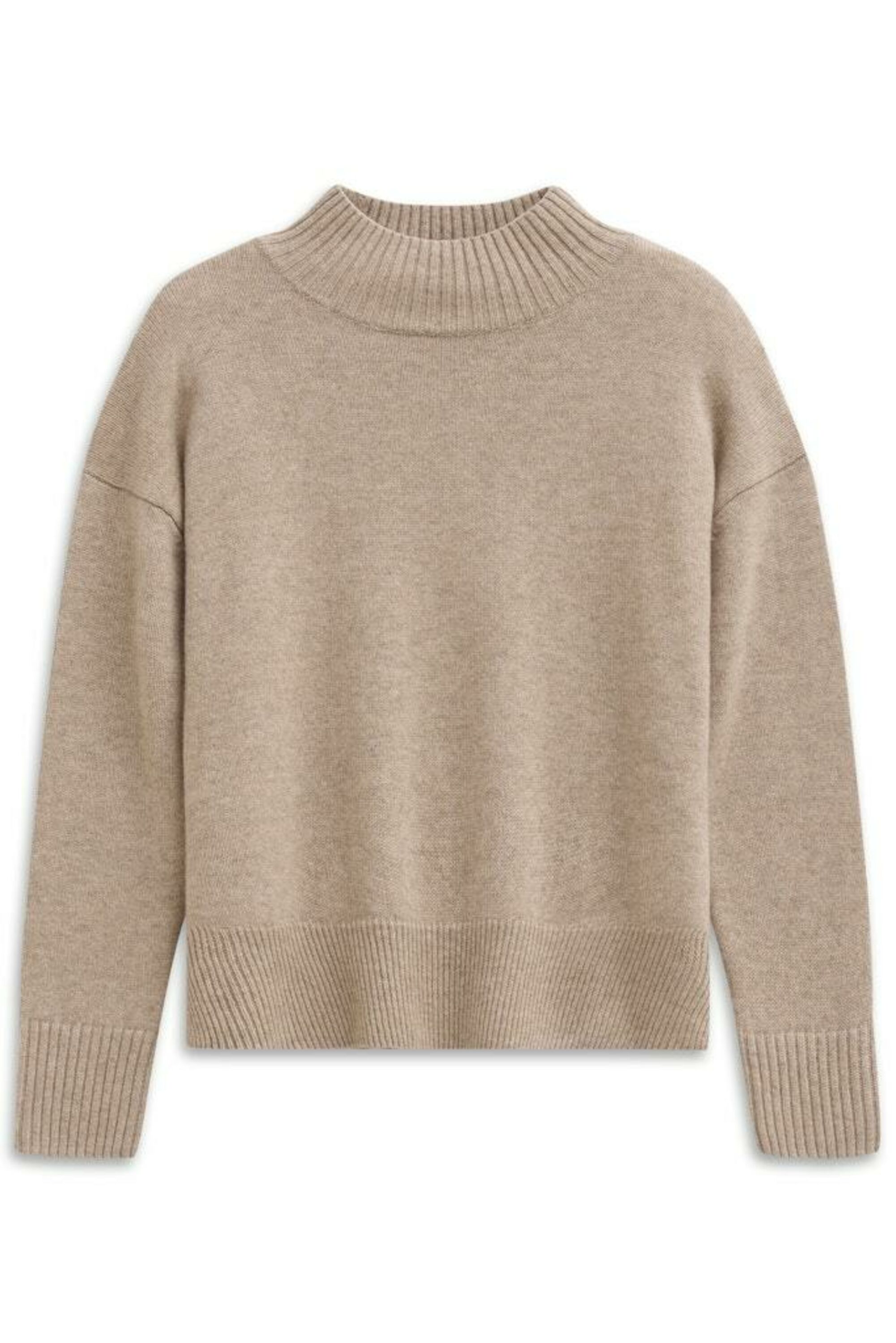 Hochwertiger Strickpullover mit Stehkragen aus 100 % Kaschmir.