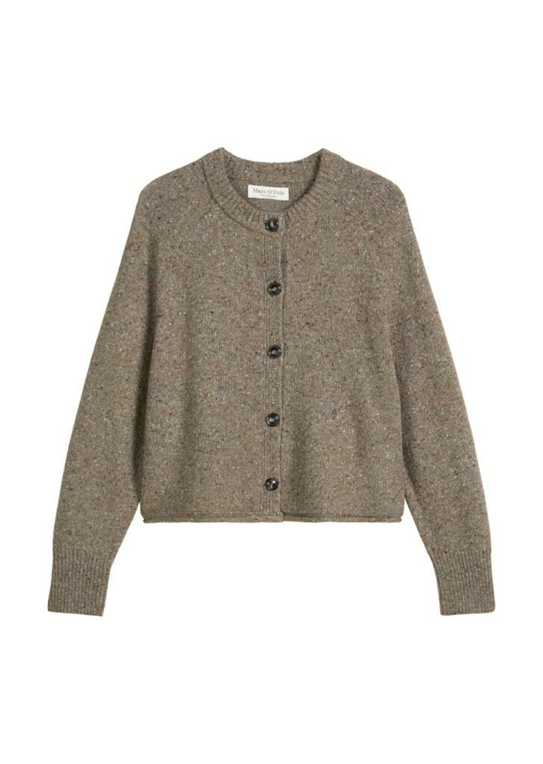 Moderner Klassiker aus exklusivem Wolle-Schurwolle-Viskose-Mix-Garn: Cardigan in zeitlosem, lockerem Regular Fit. Lässig: die Tweed-Garn-Qualität mit den dafür typisch eingestreuten Noppen in verschiedenen Farben. Die Features: gerippter Rundhalsausschnitt, legere Raglanärmel mit Fully fashioned Details und gerippten Ärmelabschlüssen und eine gerade, markant gerollte Saumlinie. Mit farblich abgestimmten Knöpfen in Hornoptik.