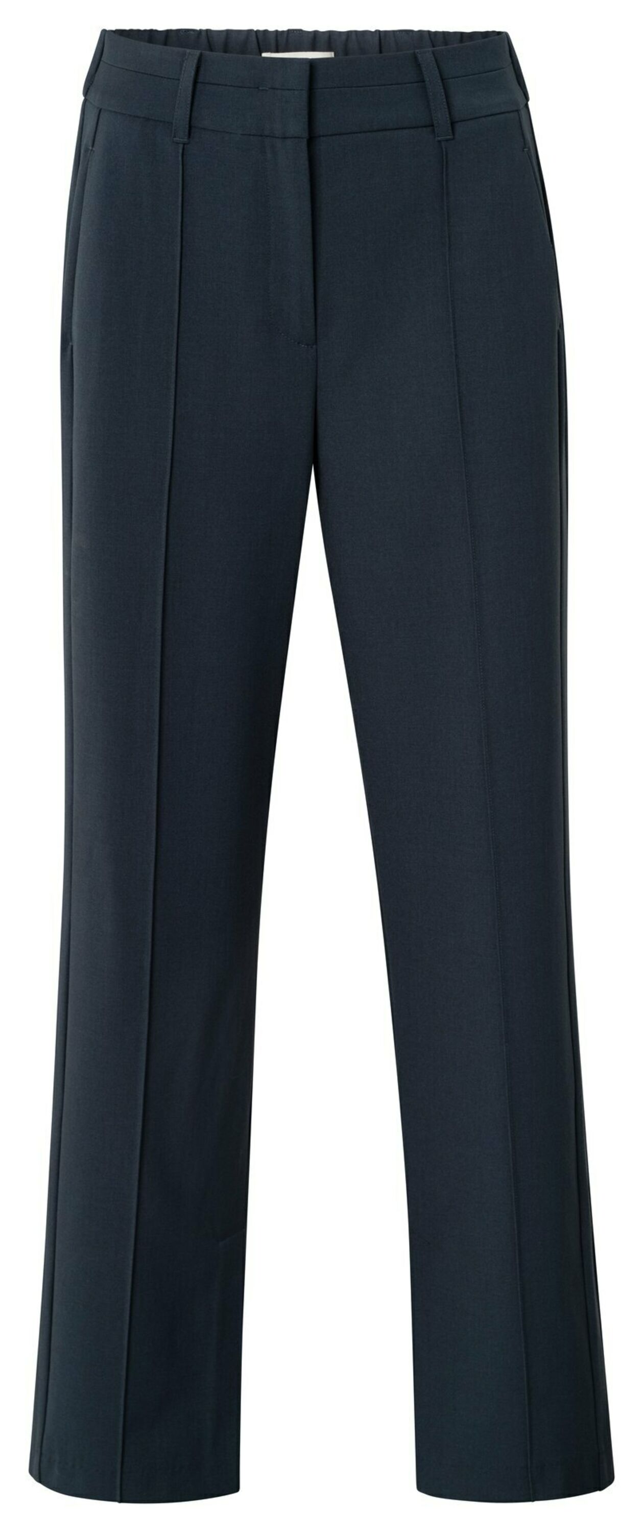 Diese weiche gewebte Hose hat einen schmeichelhaften hohen Bund, ein weites Bein und einen bequemen Elastikbund auf der Rückseite. Die Ziernähte auf der Vorderseite sorgen für einen eng anliegenden Look, und der dezente Schlitz am Beinabschluss verleiht der Hose eine moderne Note. Ein vielseitiges Kleidungsstück, das sowohl zu legeren als auch zu schicken Outfits passt.