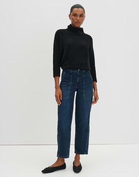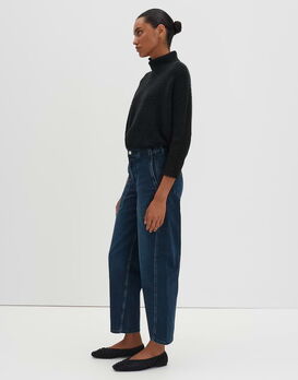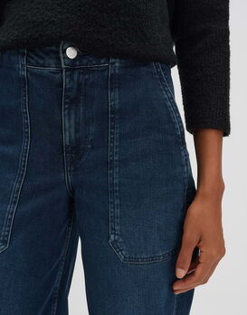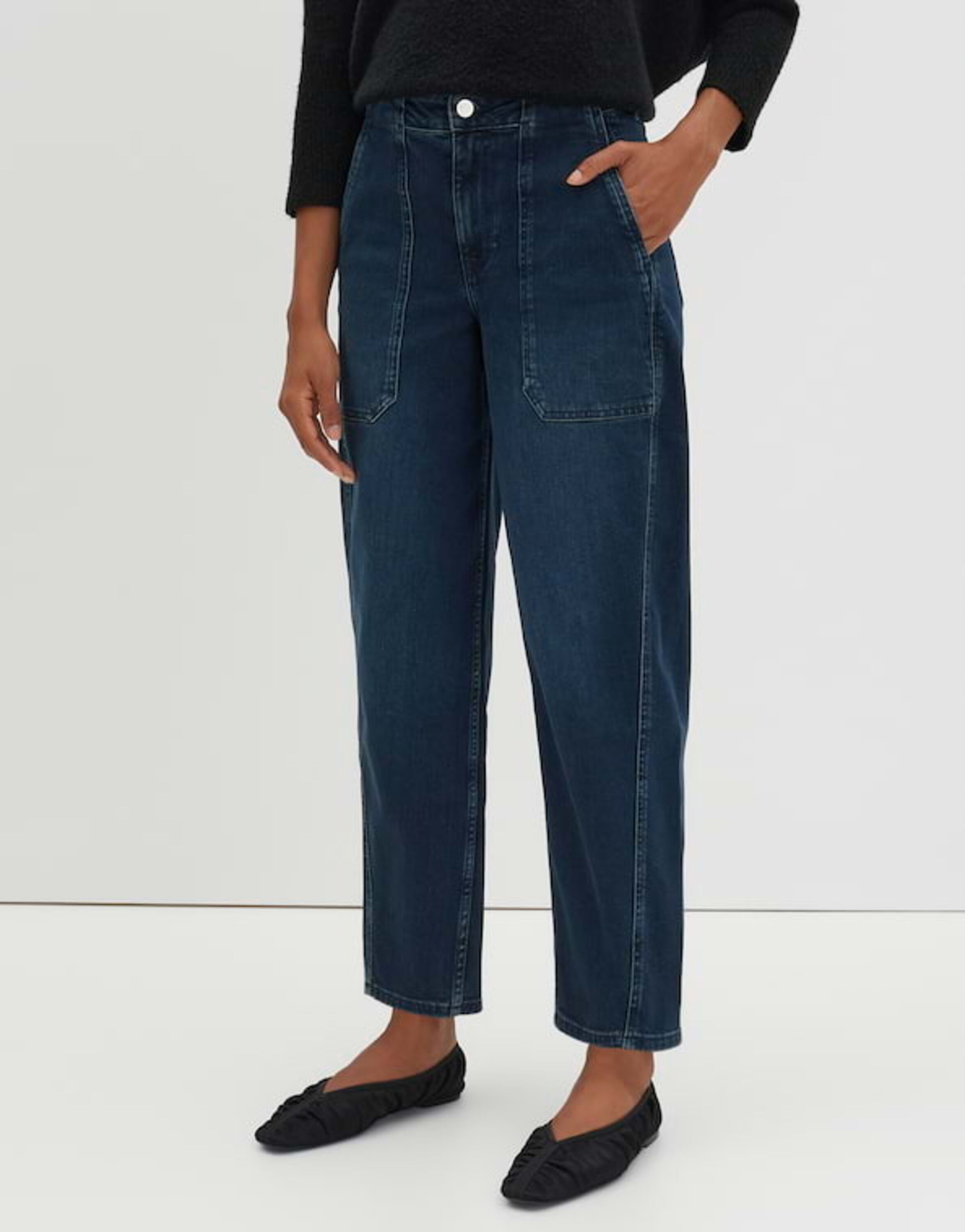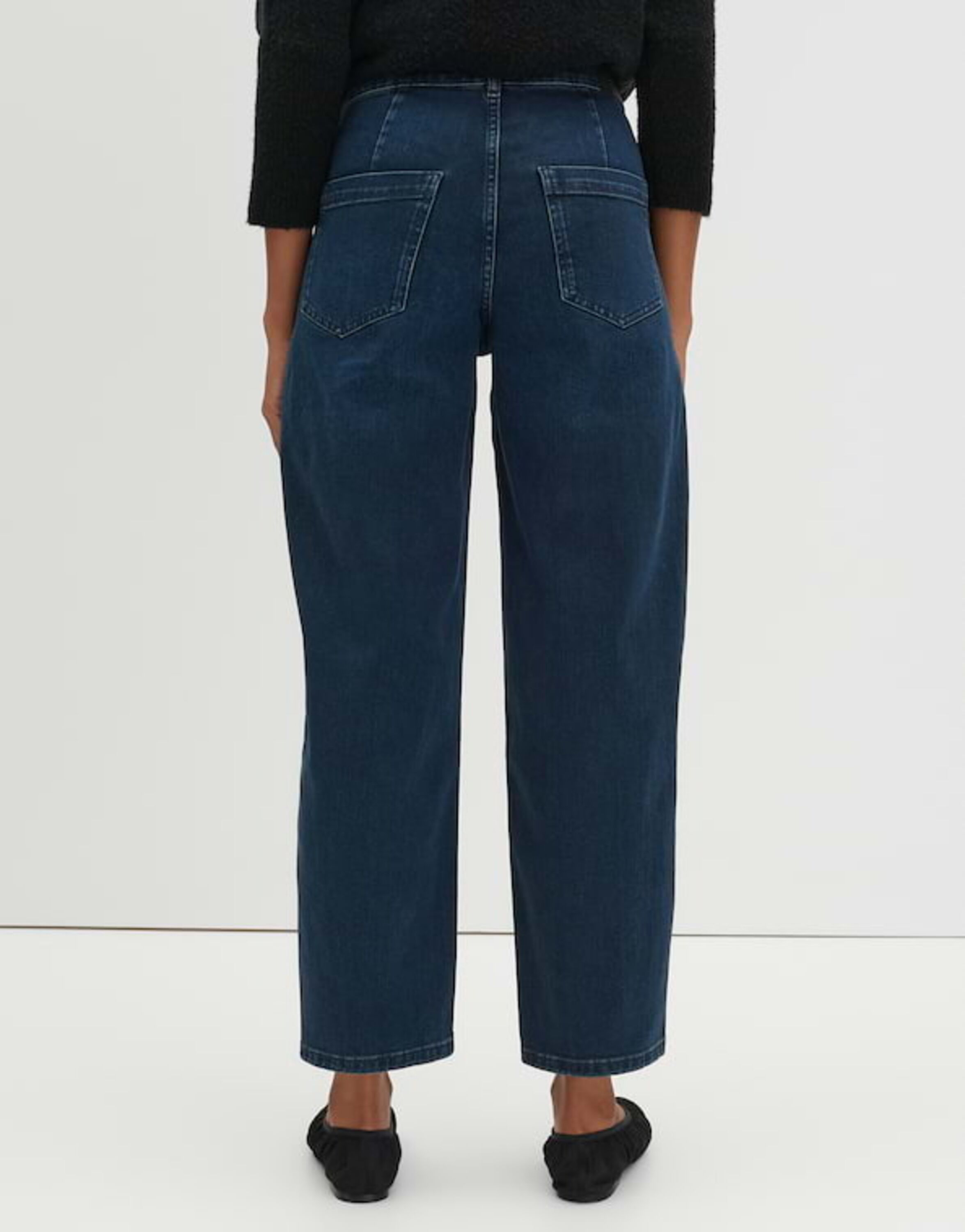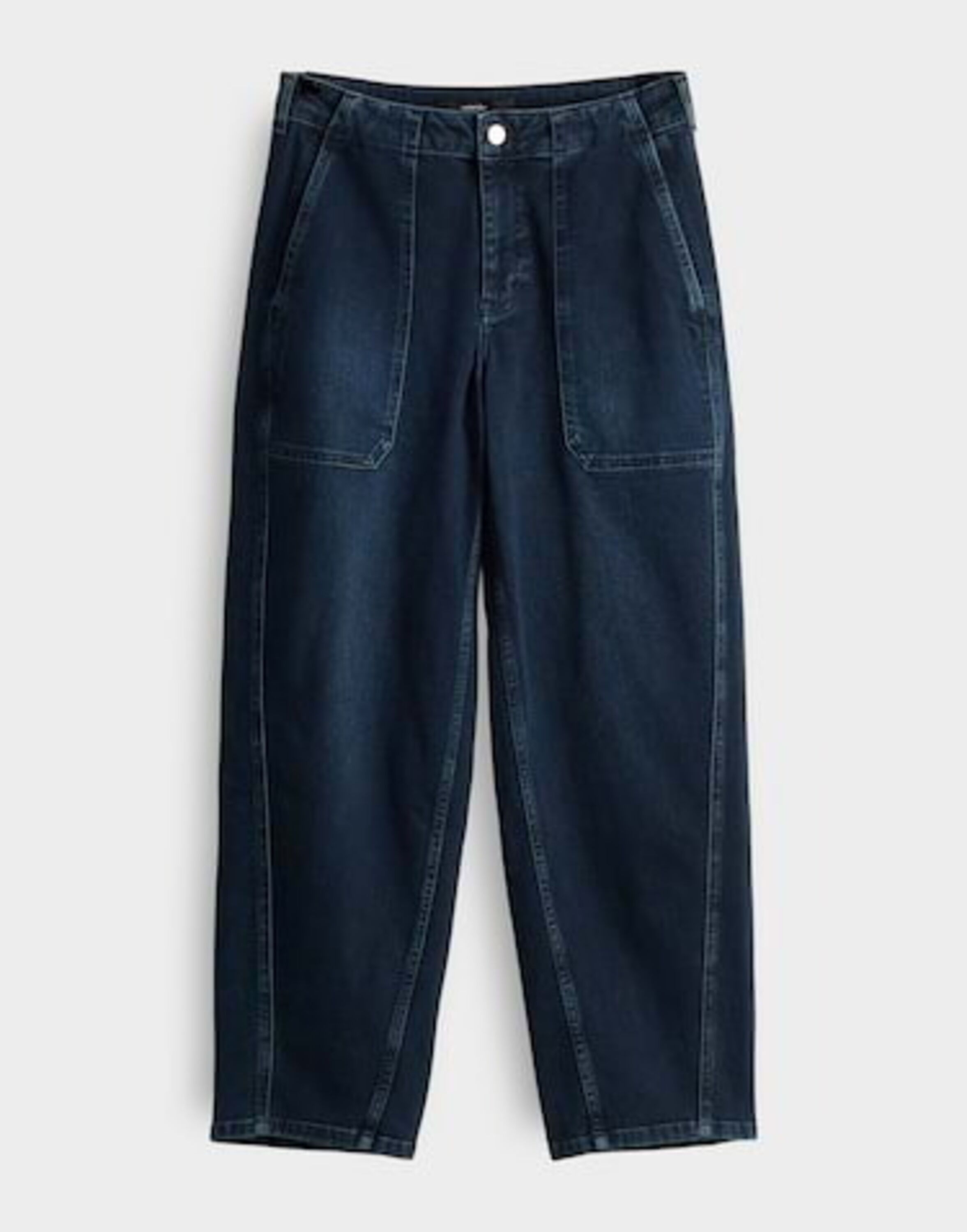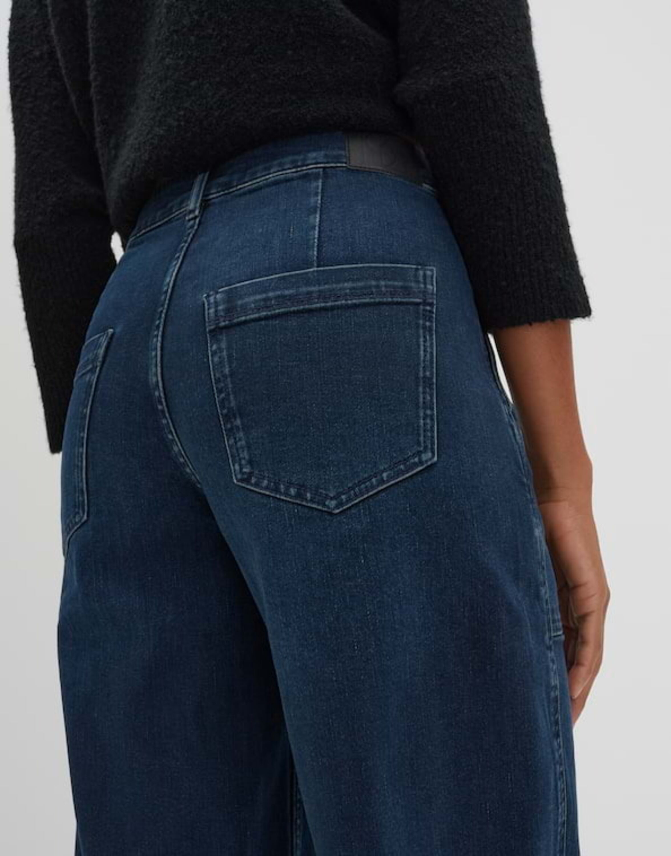 Der weiche, moderne Barrel Fit in dunklem Blue Wash lädt zu entspannten Kombinationen ein. Einfach mit Bluse und Flats stylen und schon entsteht ein urbaner Look mit Trendfaktor.