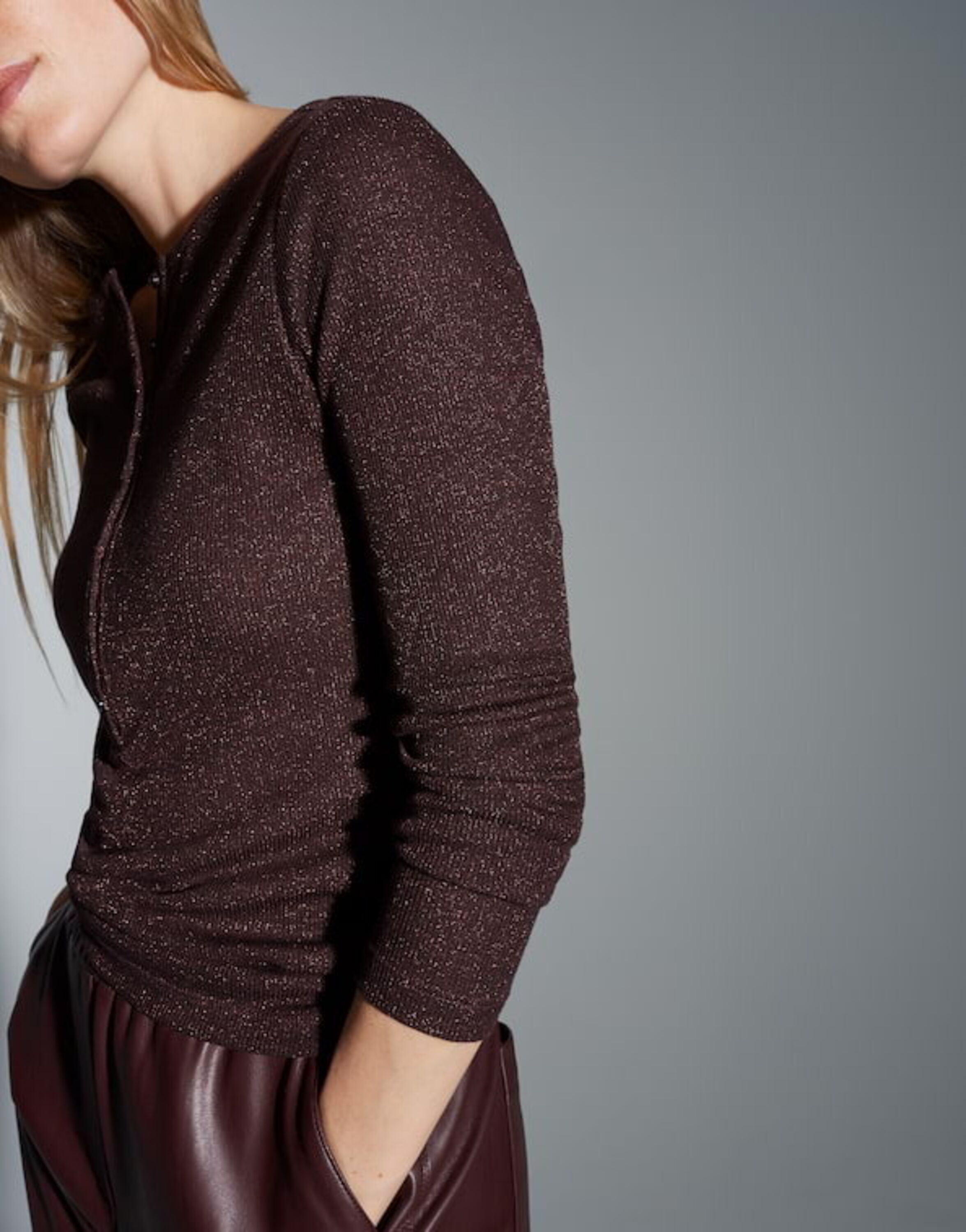 Das feine Henley-Rippshirt mit Knopfleiste bringt lässige Leichtigkeit in jedes Outfit. Vielseitig tragbar, als femininer Unterzieher oder solo für trendige Layering-Looks.
