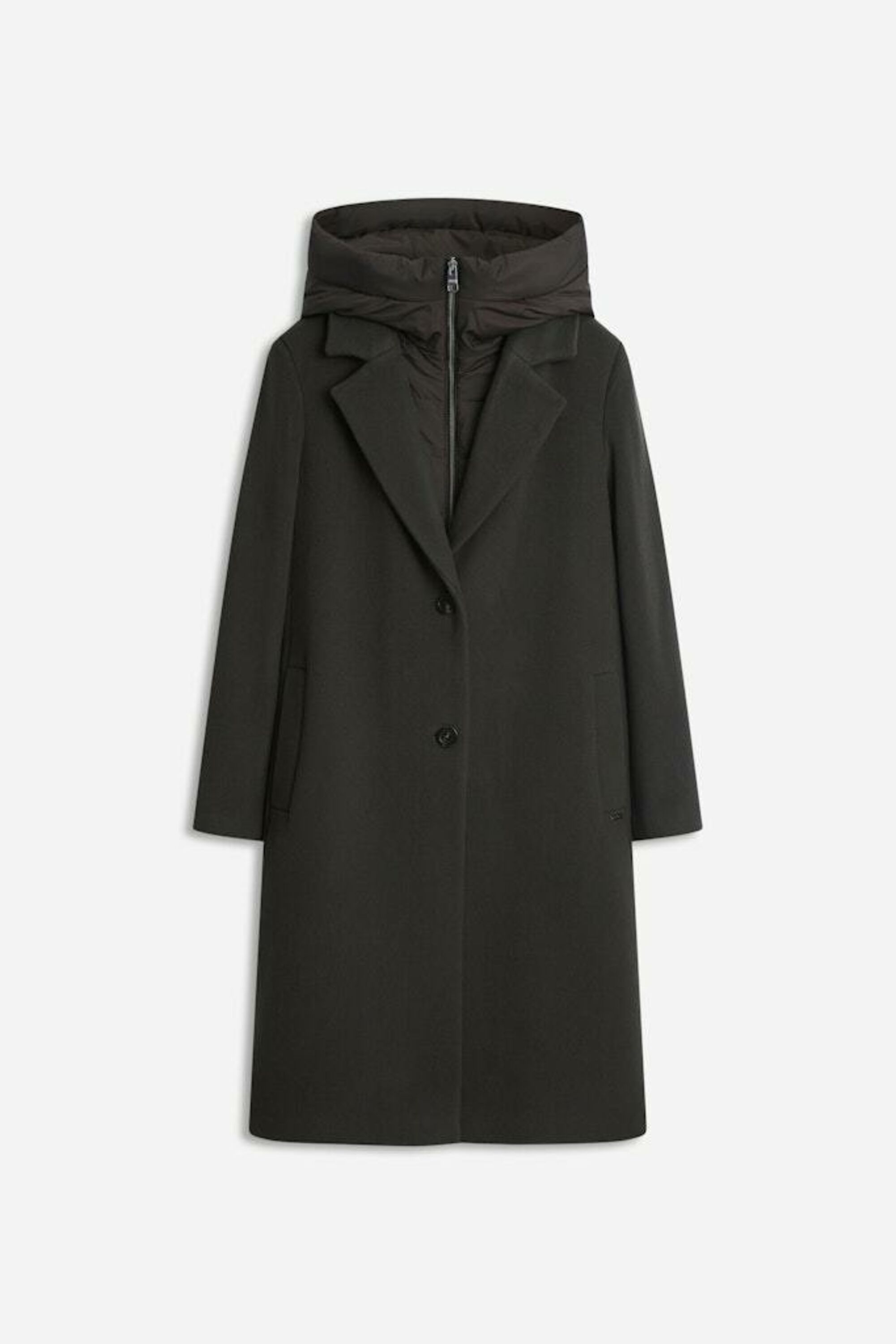 Eleganter Mantel trifft sportlichen Twist: Eine integrierte, auszipbare Weste sorgt für zusätzlichen Komfort und Style. Ideal für alle, die Flexibilität und Stil lieben.