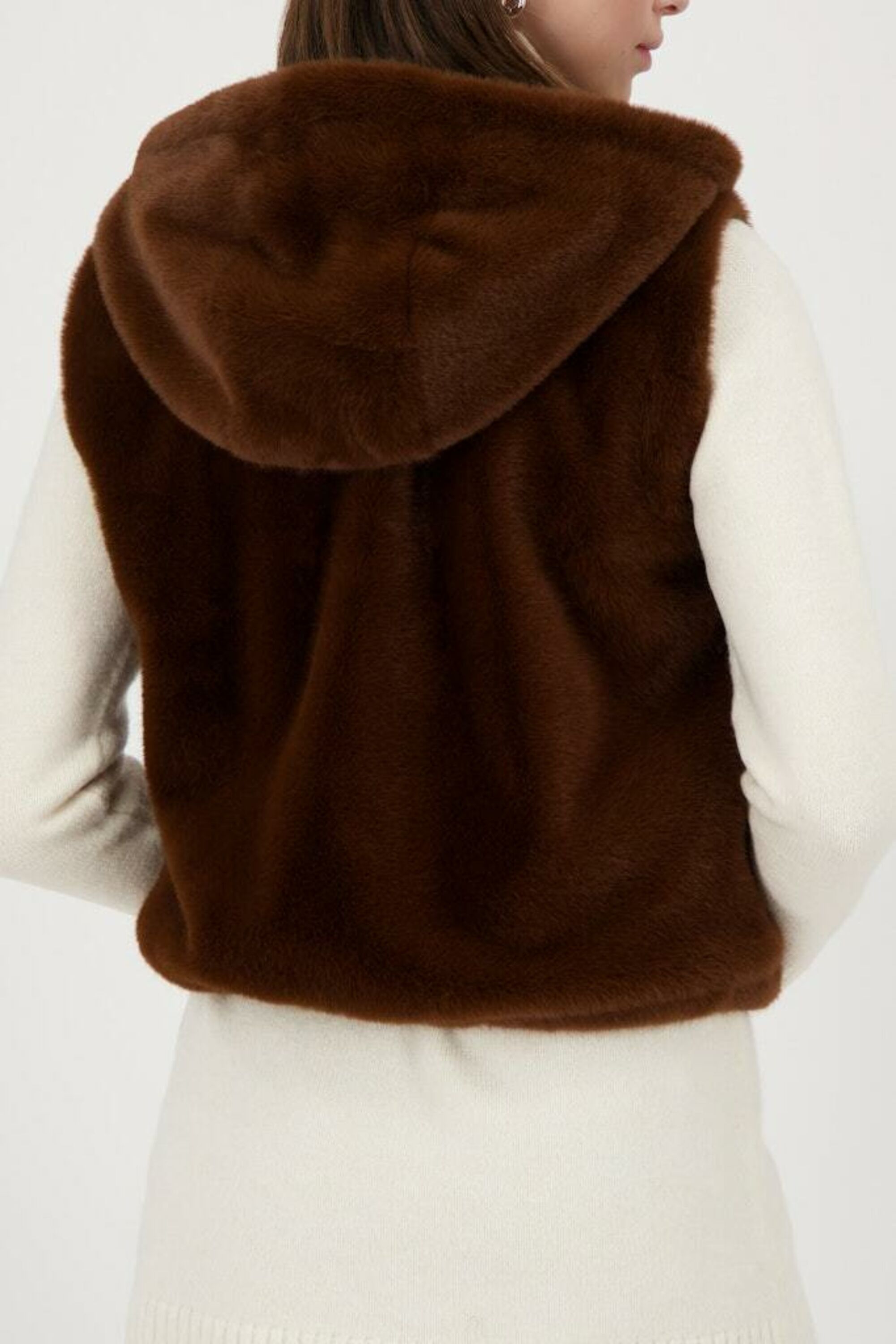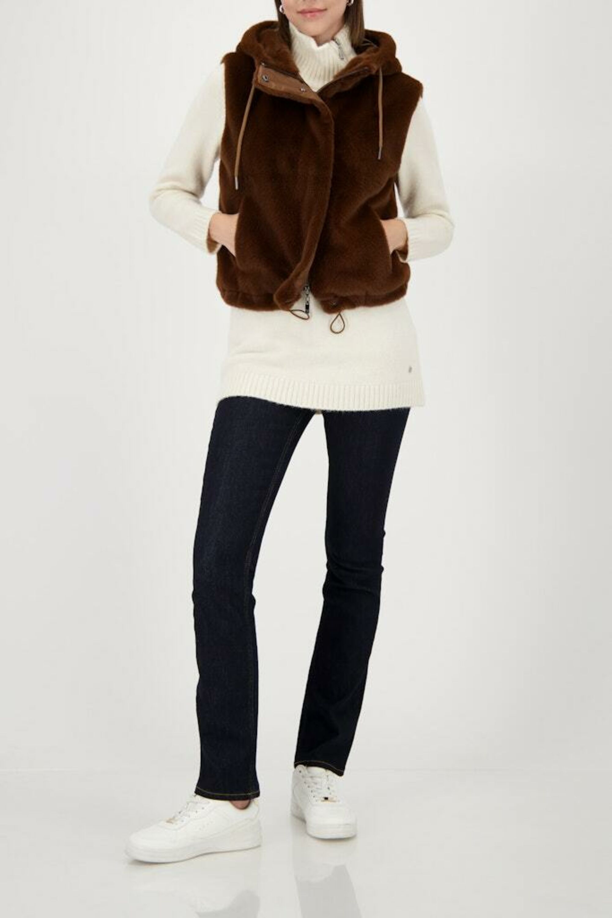 Diese stylische Weste mit Kapuze aus kuscheligem Kunstfell überzeugt nicht nur mit ihrer flauschigen Haptik, sondern auch mit praktischen Details wie seitlichen Eingrifftaschen und einem verstellbaren Saum.
