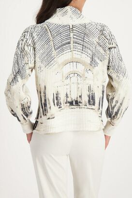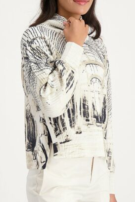 Eleganter Strickpullover aus einer hochwertigen Baumwolle mit seitlichen Schlitzen und einem auffälligen Gallery-Print für stilvolles Wohlgefühl.