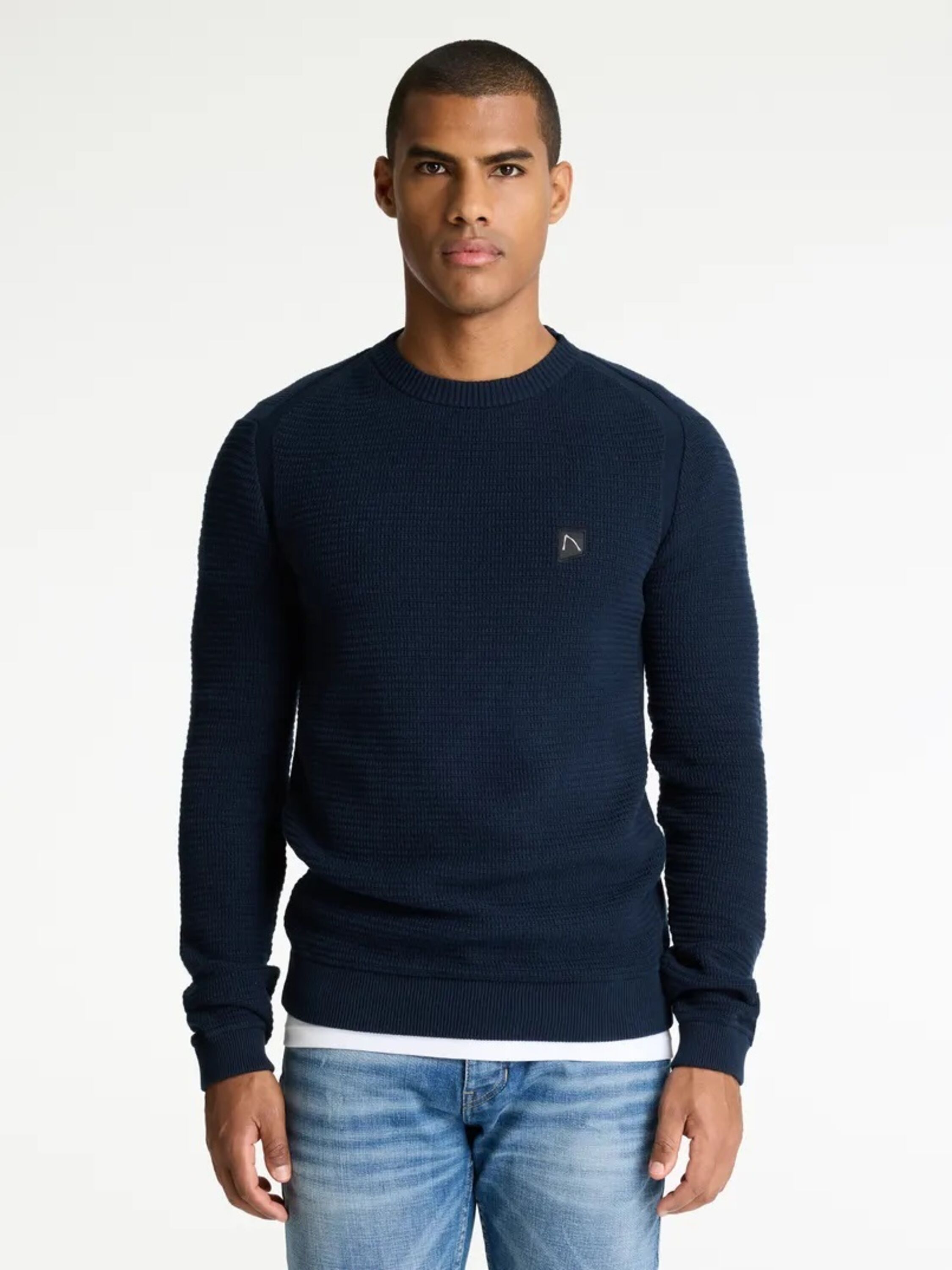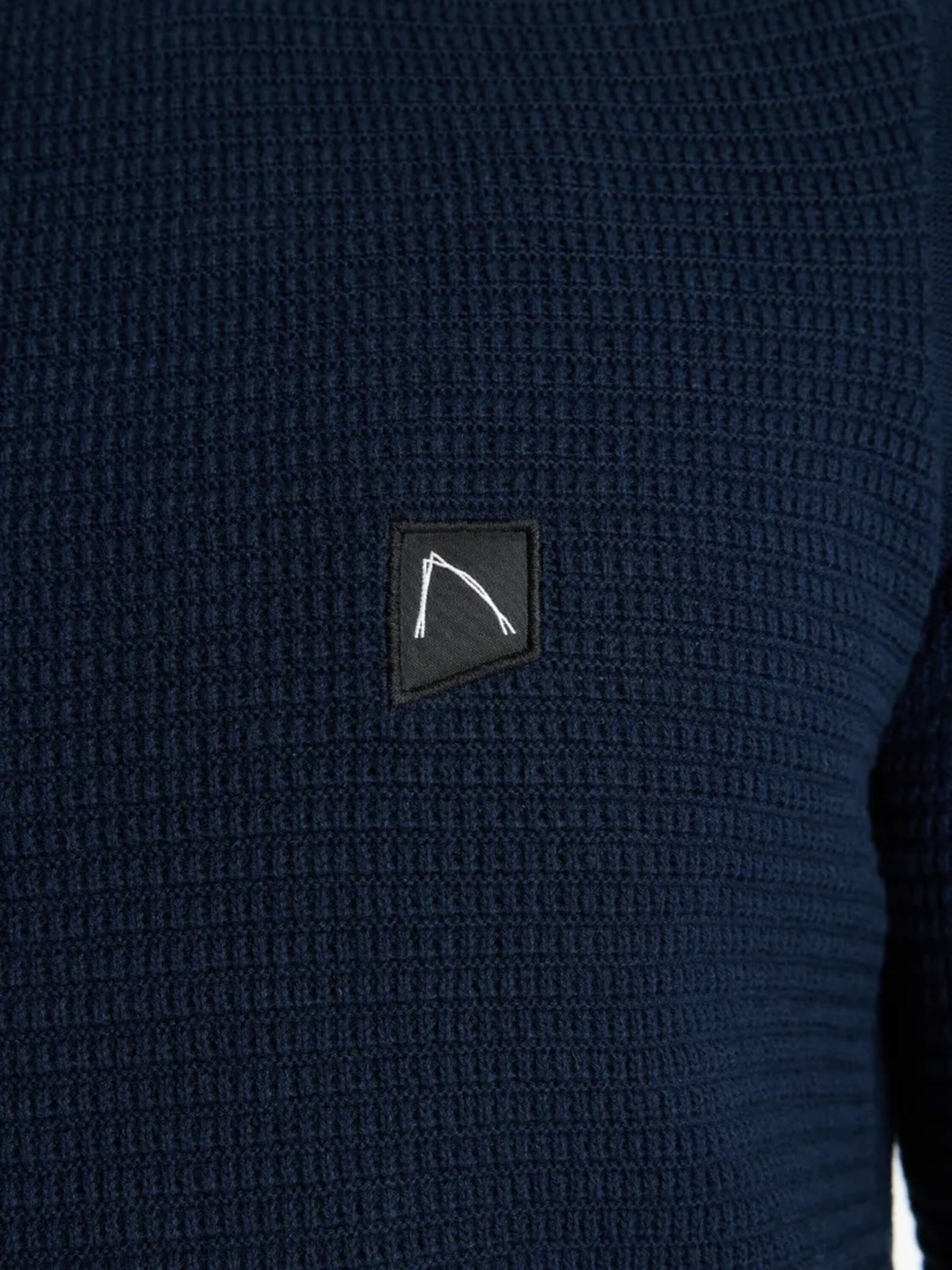 Der Guide ist ein Regular-Fit-Crewneck-Pullover aus Basketweave-Performance-Stoff mit weichem Griff. Mit tonalem Komma-Badge auf der Brust.