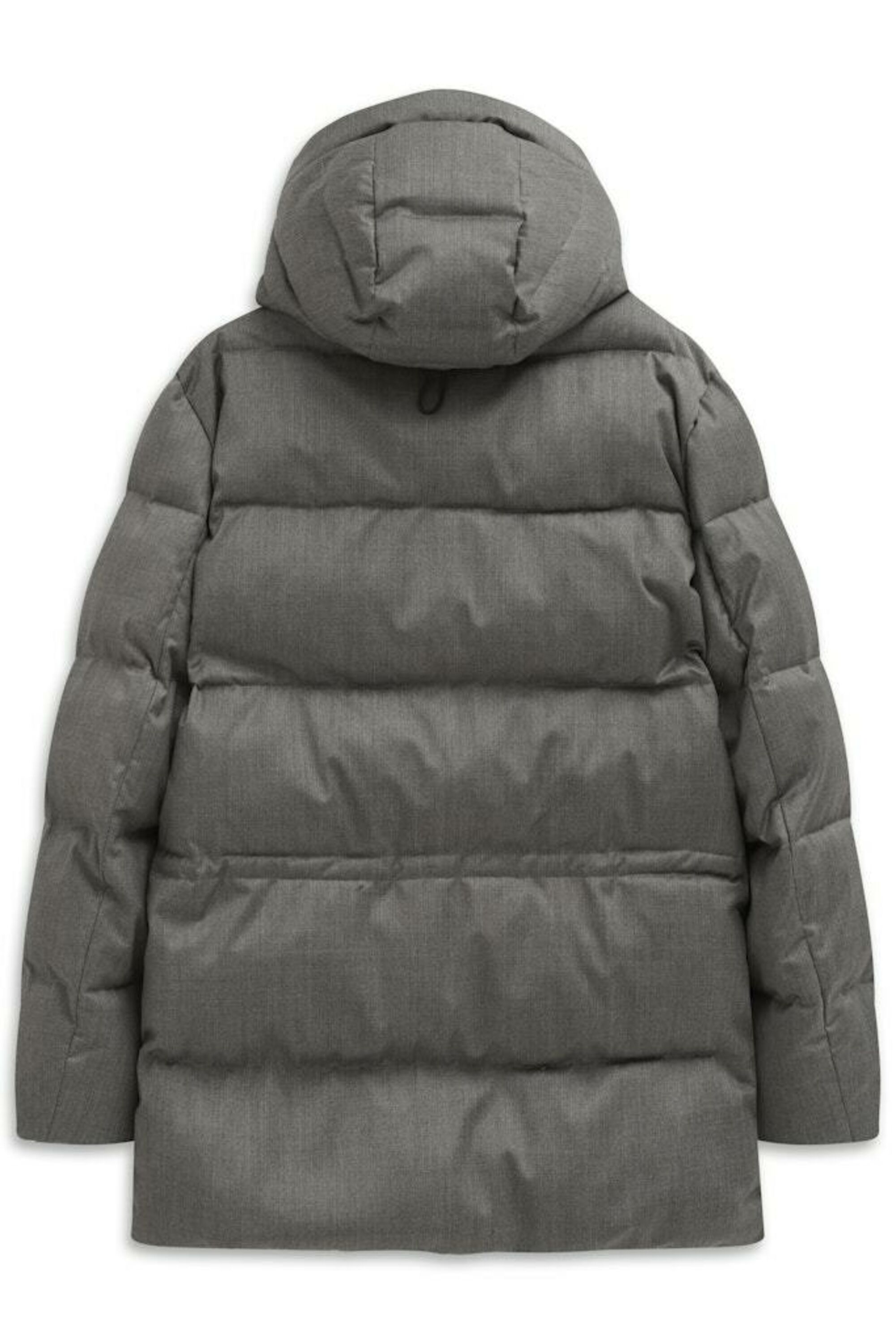 Steppparka mit angeschnittener Kapuze sowie innenliegender Stehkragen und Sorona Füllung. Schräge Leistentaschen in der Brust und aufgesetzte Pattentaschen mit zwei Wege Eingriff als Seitentaschen. Tunnelzug im Rücken und innenliegender Ärmelstulpe. Innen ein ganzes Futter mit Stepp im Rücken. Der Artikel mit Membran hat eine gepflegte Struktur.
