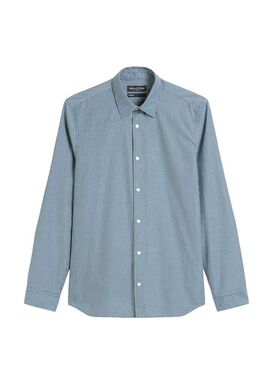 Leicht, weich, zeitlos: Dieses Hemd aus zertifizierter Bio-Baumwolle überzeugt mit feinem Griff und dezent aufgerauter Oberfläche. Die besonders leichte Qualität sorgt für angenehmen Tragekomfort, das ruhige, gleichmäßige Warenbild unterstreicht den cleanen Look. Mit klassischem Kentkragen, abgerundetem Saum und körpernaher Shaped Fit-Passform – ein vielseitiger Begleiter für gepflegte Everyday-Styles.