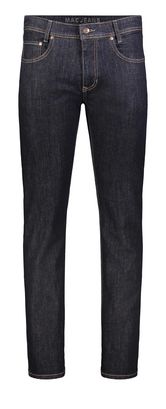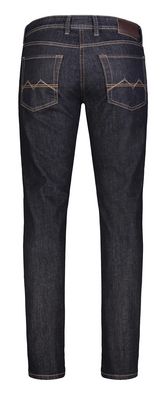 Modern Fit, gerades, schmales Bein, gemäßigte, bequeme Leibhöhe, Five Pocket, Alpha Denim, hochwertige Baumwoll-Qualität mit Stretch-Anteil, sportive Waschung, feiner Glanz, angenehmer Griff, hervorragende Passform, hoher Tragekomfort, Materialmix mit Recycled Cotton, über Better Cotton gesourcte Baumwolle, Das Model ist 1,85m groß und trägt die MAC Bundweite 33 und Länge 32, Fußweite bei Größe 33: 37cm