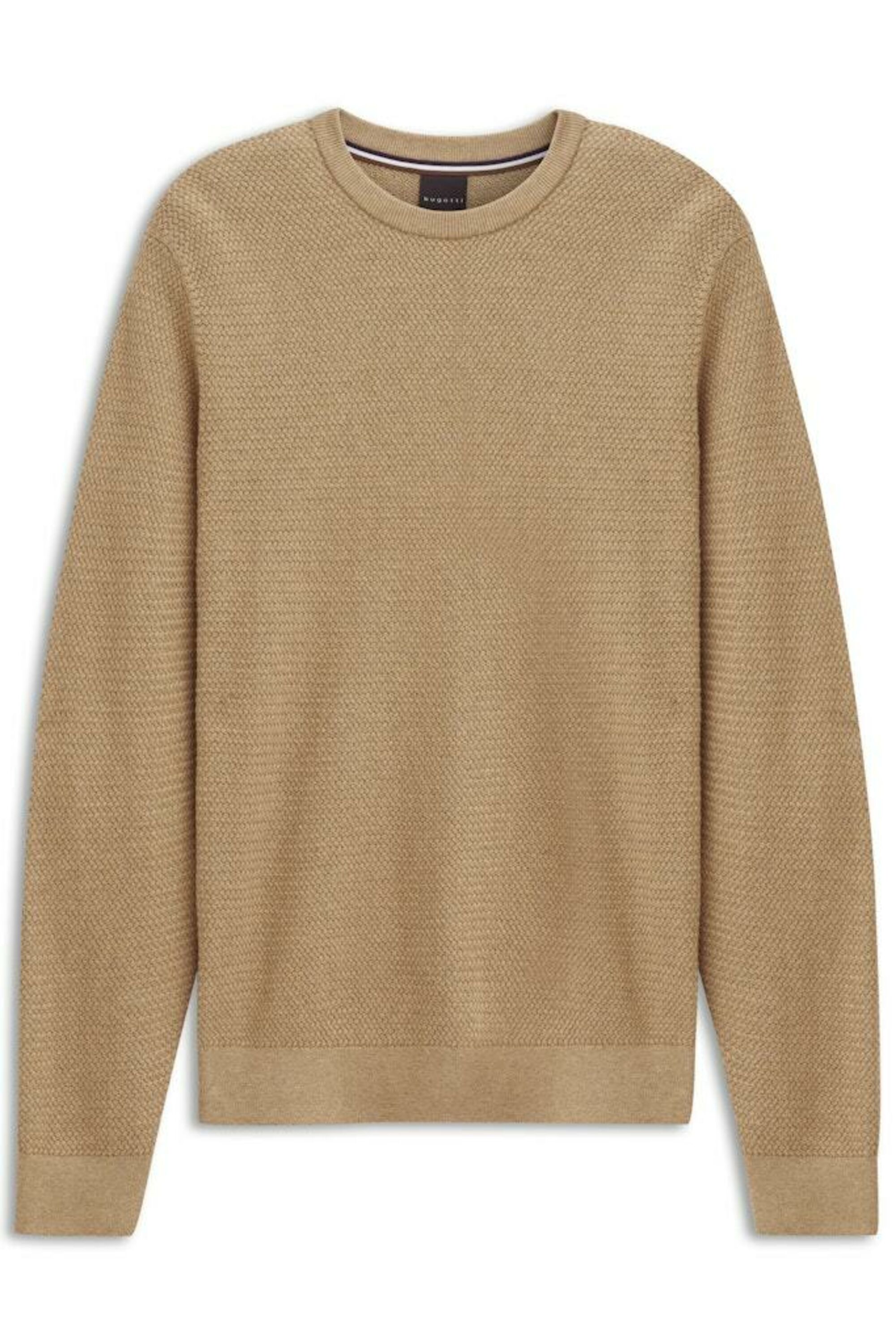 Pullover mit einer Geflechtstruktur und bugatti Flaglabel an linker Seitennaht.