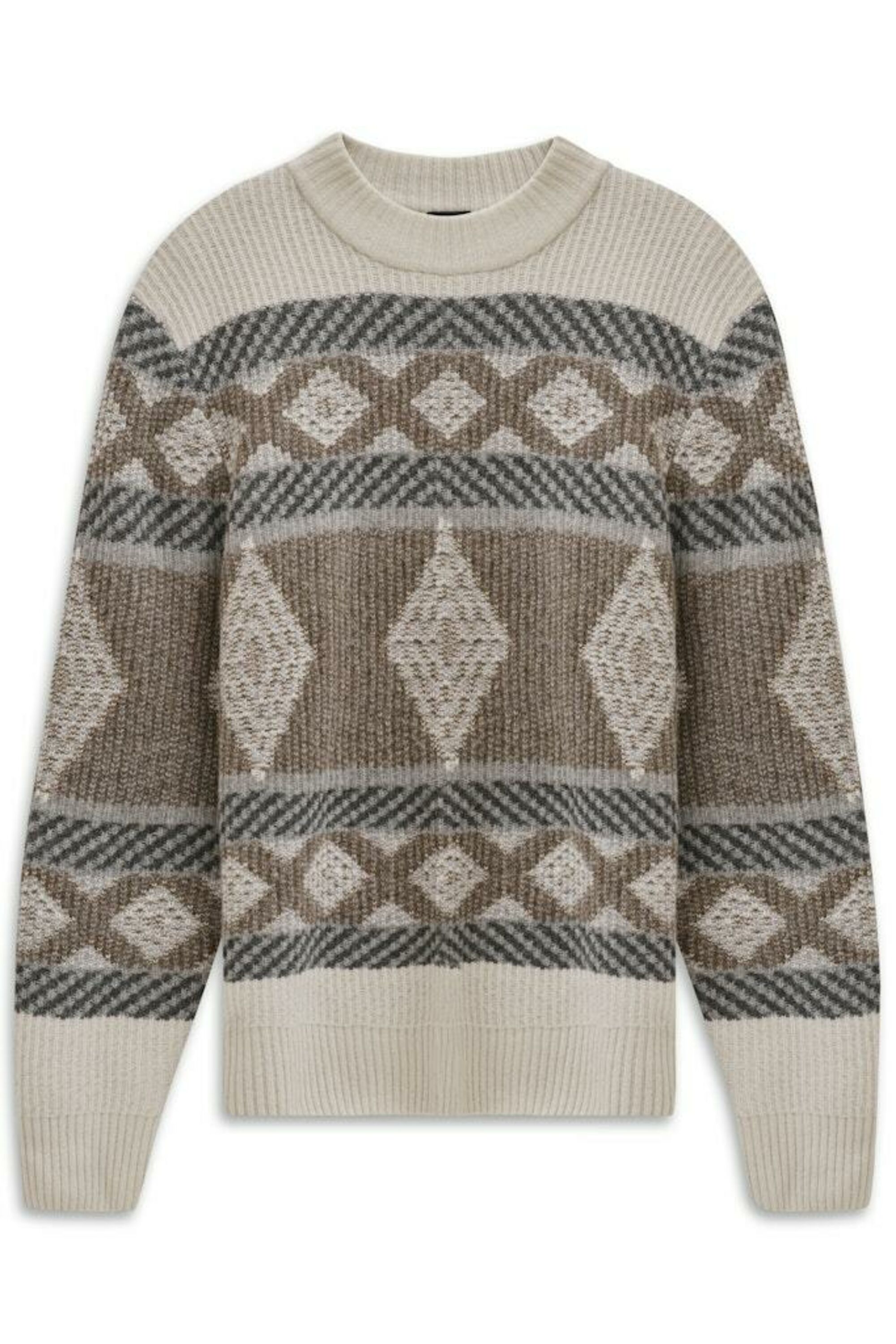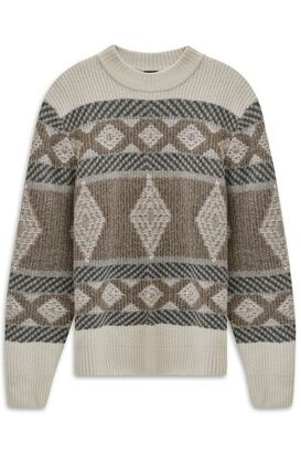 Grobstrick Pullover mit fair isle Muster, Stehkragen und bugatti Seitennaht Label.