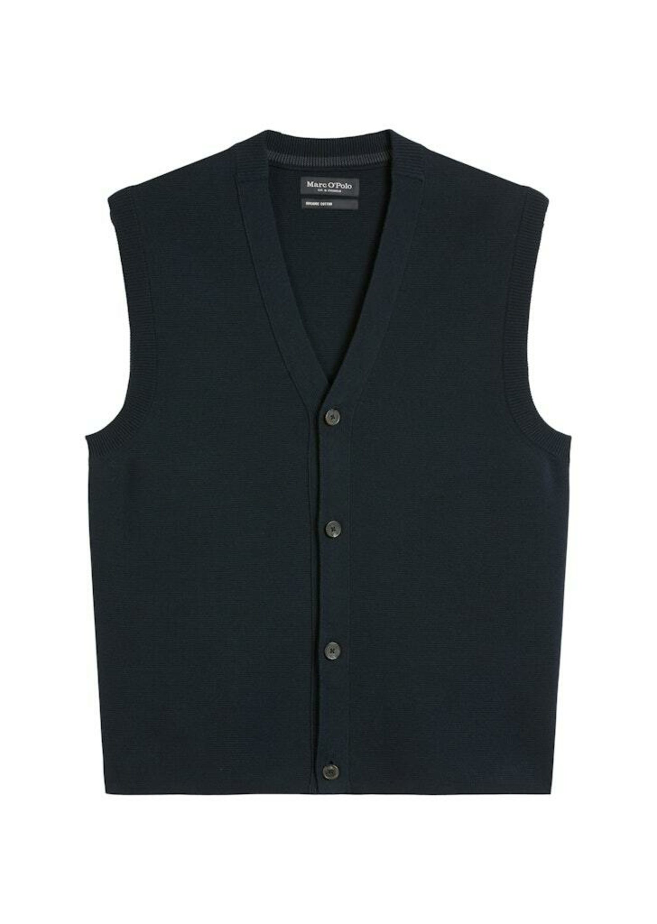 Diese Strickweste aus reiner, zertifizierter Bio-Baumwolle überzeugt durch ihre hochwertige Verarbeitung und zeitlose Eleganz. Der Milano-Strick sorgt für eine feste, formstabile Struktur und eine gleichmäßige Oberfläche, die den modernen Look unterstreicht. Mit ihrem V-Ausschnitt und dem regulären Schnitt bietet die Weste eine bequeme Passform. Die gerippte Einfassung an den Ärmelöffnungen rundet das Design ab und sorgt für einen perfekten Sitz. Ideal für einen lässig-eleganten Look. Designed for Circularity: die Strickweste wurde gemäß der Designkriterien für zirkuläres Design entworfen, sodass sie schließlich einfacher recycelt werden kann.